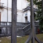 Sul lato destro del giardino osserviamo il Teatro Jacquard che si estende verso la parte posteriore del parco; l’edificio era inizialmente destinato ad abitazione per il custode, stalla, magazzino, ma subì una trasformazione nel 1869 divenendo una sala teatrale polivalente capace di accogliere 800 persone. La facciata in stile lombardesco è arricchita da dodici medaglioni, che rappresentano illustri personaggi scledensi. Orientando lo sguardo verso sinistra si è catturati dalla serra a forma concava che sembra quasi essere un sipario che cela il ninfeo retrostante; tutta l’area posteriore è caratterizzata da un sistema di grotte, brevi camminamenti e gradinate, balconi belvedere e popolata da figure mitologiche.