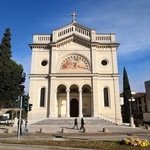 L’interno della chiesa è a croce latina, la navata centrale è il doppio delle due navate laterali; la luce entra, oltre che dall'alta cupola, dalle bifore ai lati delle cappelle e dalle coloratissime vetrate. L’interno è riccamente decorato da dipinti e sculture di artisti del Triveneto.