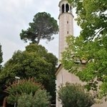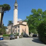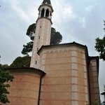 La chiesa, costruita dopo il 1575, fu dedicata a San Rocco, come voto per la liberazione da un'epidemia di peste. Ingrandita nel XVIII secolo, fu rimaneggiata nelle forme attuali da Antonio Caregaro Negrin fra il 1832 e il 1864, come elemento pittoresco del Giardino Jacquard. In questo contesto fu aggiunto lo slanciato campanile ottagonale. L'interno è a una navata, conclusa da un abside, nel quale si trova l'altare del 1765 in marmi policromi con l'immagine della Madonna delle Grazie (opera di Romano Cremasco, 1929).