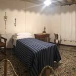 Il tour della mostra inizia dalla Chiesa, un bellissimo Tempio neoclassico, progettato da Bartolomeo Folladore e completato dal figlio Gioacchino, che custodisce in un’urna di bronzo dorato le spoglie mortali di S. Giuseppina Bakhita. Oltre a quattro dipinti di Giuseppe Mincato che raffigurano la Sacra Famiglia, nella chiesa c’è una pietà, opera di Romano Cremasco ed una Via Crucis in terracotta del figlio Giovanni Cremasco.