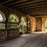 Un lato del portico si affaccia sul giardino pensile, grazie a delle arcate: da qui si gode di un’ampia visuale su tutta la vallata del Rana.