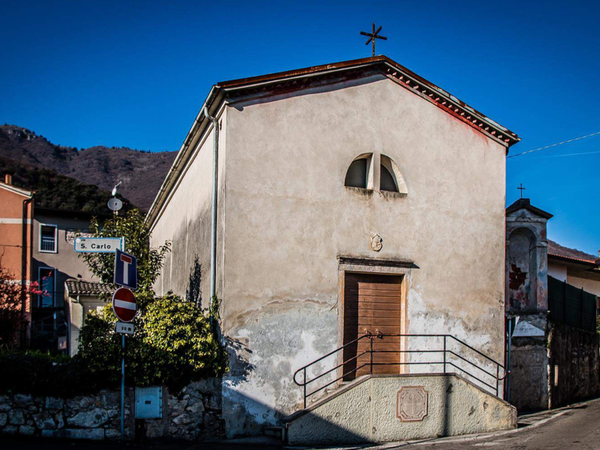 A destra della chiesetta di San Carlo, ai piedi del capitello, rimane traccia della giassara di Santorso.